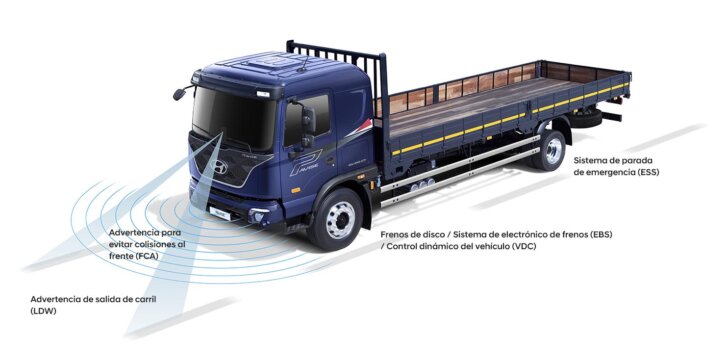 El camión EX Series ayuda a minimizar los riesgos y los peligros con sus diversas características de seguridad, mientras que el control dinámico avanzado del vehículo proporciona lo último en desempeño de frenado.